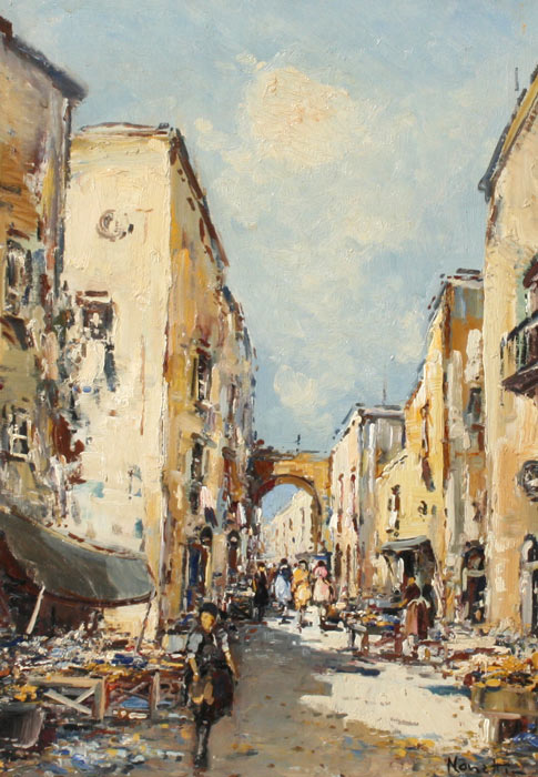NONETTI, A., (Italian, 20th C.): Market Scene, Oil/Canvas, 27'' x 19'', signed, framed, 35'' x 27''.