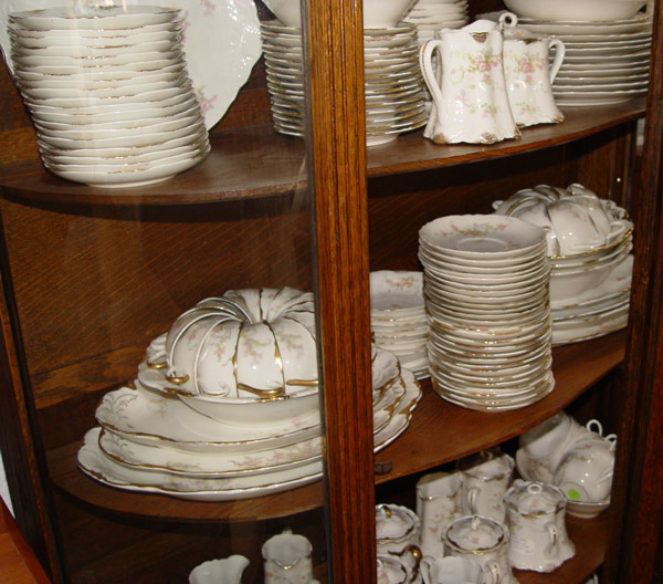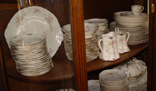 LARGE ACCUMULATION OF PINK ROSE DECORATED WARWICK CHINA: