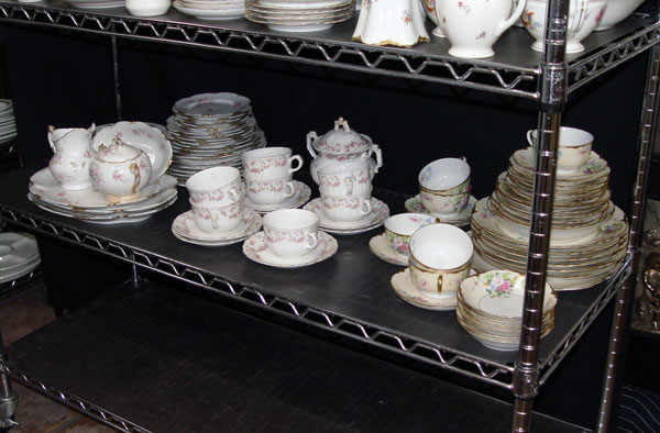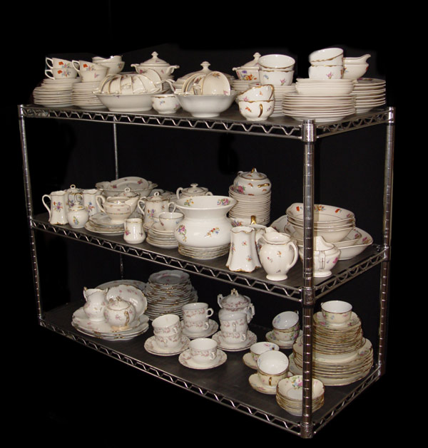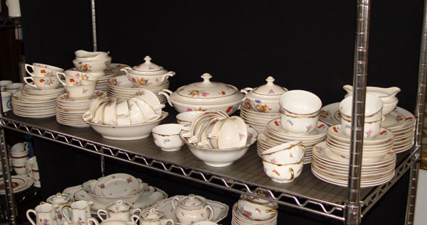 HUGE SELECTION OF FLOWER DECORATED WARWICK CHINA: Approx. 183 pieces of a well coordinated blend of sprays of brightly colored flowers on a white ground. Platters, serving bowls, sugars, dinner plates, soup bowls, cups and saucers, dessert and bread plates. Appears to be two different but very similar patterns.