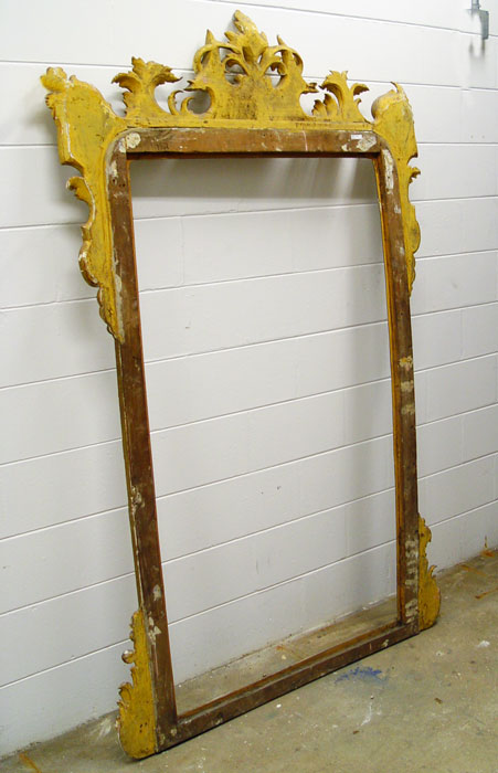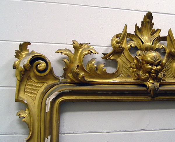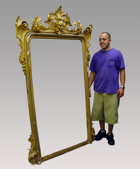 GILT MIRROR FRAME WITH MASQUERON: 81'' x 51 1/2'', 61 3/4'' x 39'' inset