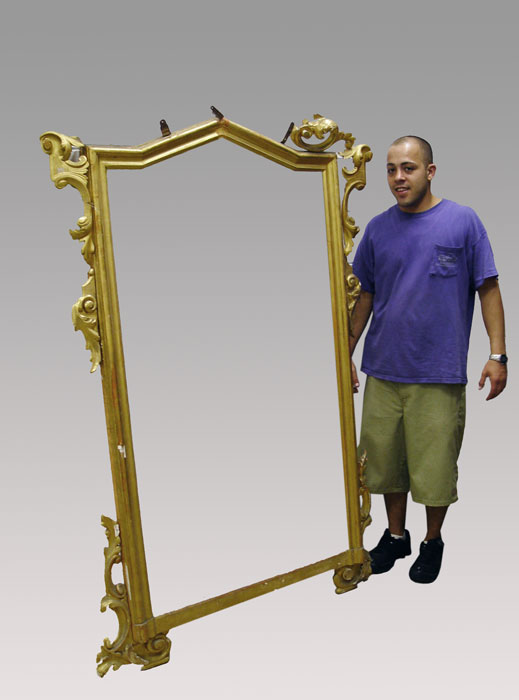 ROCOCO ORNAMENTAL GOLD GILT FRAME: Approx. 49'' x 72'' without crest, 62'' x 35 1/2'' inset