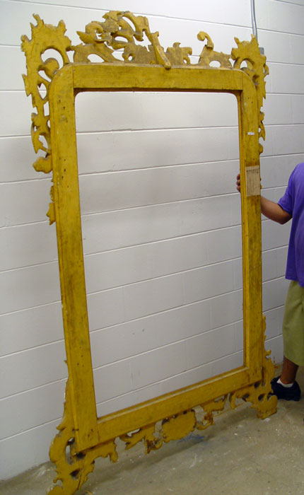 GOLD GILT MIRROR WITH ROCOCO CARVED CREST: Approx. 86'' x 55'', 57 1/2'' x 36 3/4'' inset