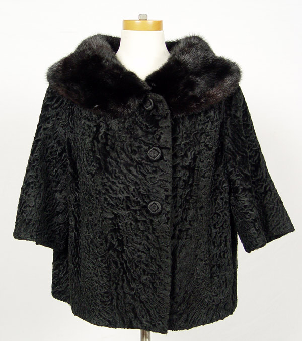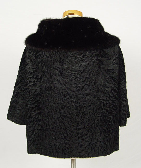 VINTAGE PERSIAN LAMP JACKET WITH BLACK MINK COLLAR: Short jacket with short sleeves. 24''l. 17'' across shoulders.