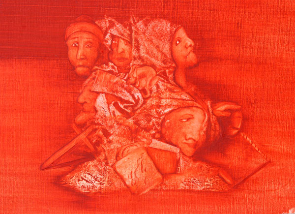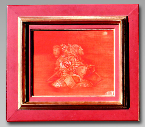 FRAMA, Heinrich Maryan, (French, 1949): Surreal Scene, OIL/Canvas, 9 1/2'' x 12'', signed and dated 96?, custom painted frame, 16'' x 18 1/4''. At one time Maryan was the most expensive living artist, according to Guiness Book of World Records.