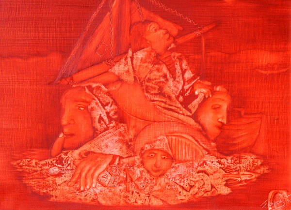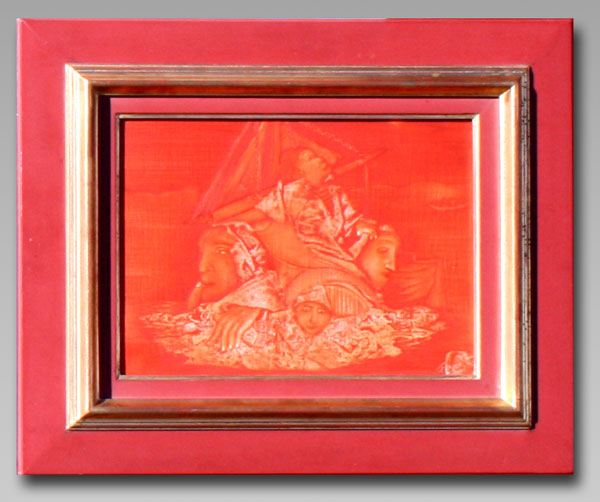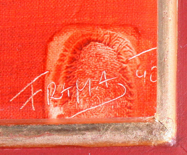 FRAMA, Heinrich Maryan, (French, 1949): Surreal Scene, Acrylic/Canvas, 9 1/2'' x 12'', signed and dated 90, custom painted frame, 16'' x 19 1/2''. At one time Maryan was the most expensive living artist, according to Guiness Book of World Records.