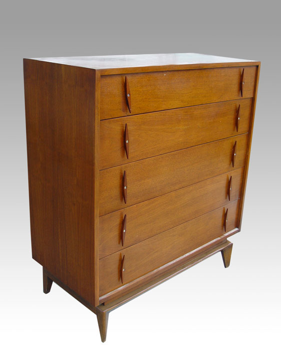 AMERICAN OF MARTINSVILLE MID CENTURY TALL CHEST: 5 drawer chest, 45''h. x 40'' x 19''.