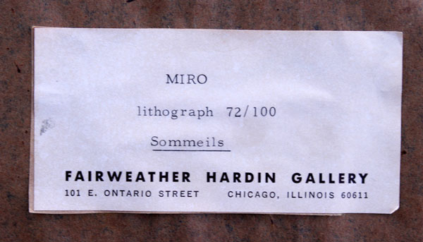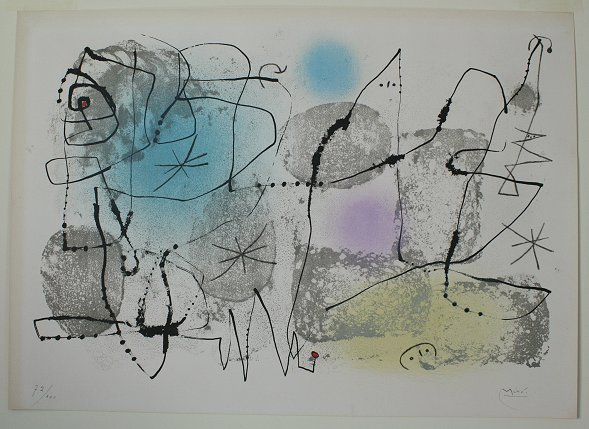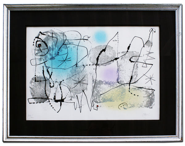 MIRO, Joan, (Spanish, 1893-1983): ''Sommeils'', Color Lithograph, sight size 15'' x 21 1/4'', 22 1/4'' x 16'' with margins, pencil signed, numbered 72/100, vintage silver gilt frame, 22 1/4'' x 28 1/2'', Fairweather Hardin gallery label verso, Chicago.