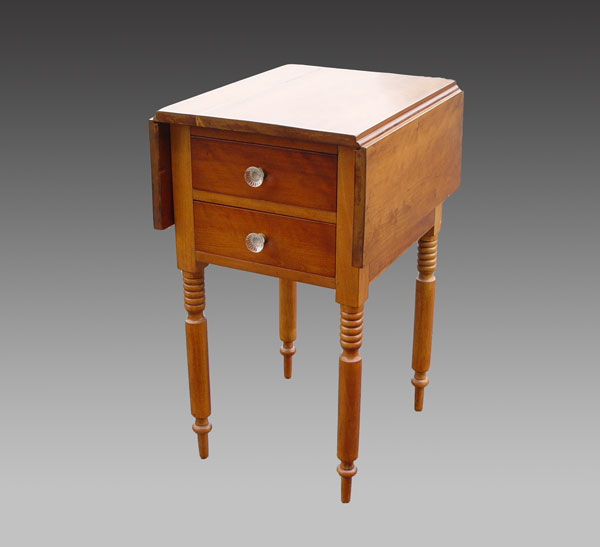 1870'S 2 DRAWER DOUBLE DROPLEAF WORKSTAND: 30'' x 19 1/2'' x 16 3/4''
