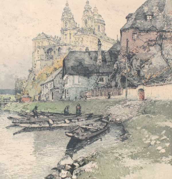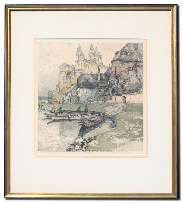 KASIMIR, Luigi, (Austria, 1881-1962): European Scene, Color Etching and Aquatint, sight size 12 1/2'' x 12'', pencil signed, numbered 101/350, framed, 21'' x 18 1/2''.