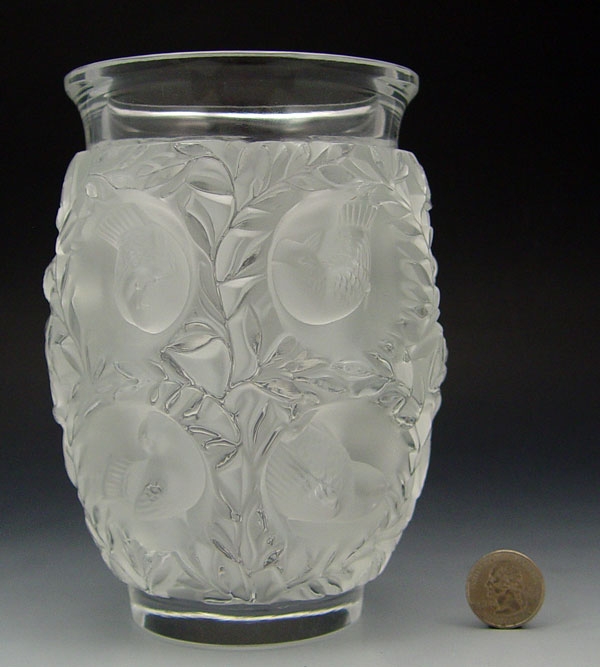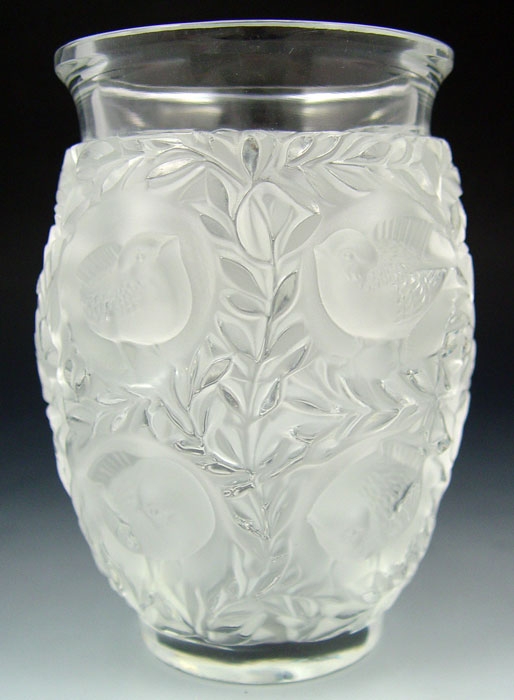 LALIQUE BAGATELLE BIRD VASE: 6 1/2'' tall. Lalique France trademark.