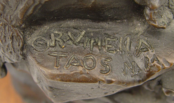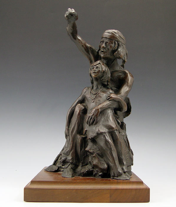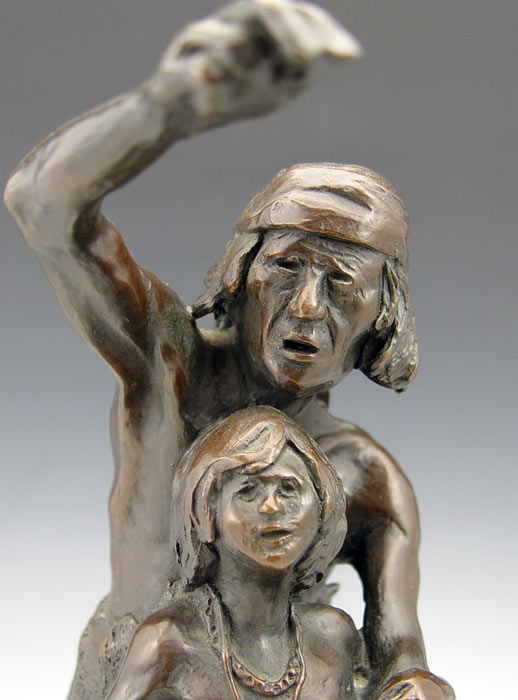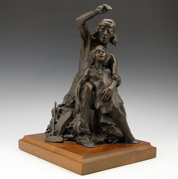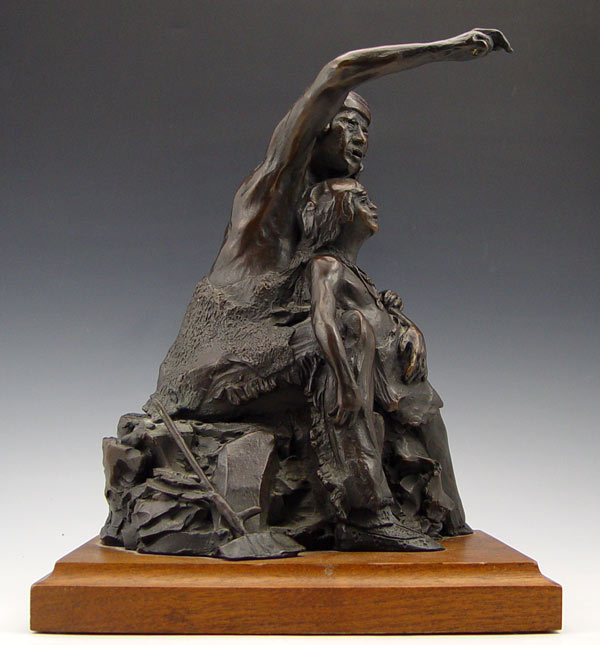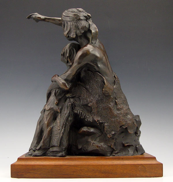 VINELLA, Ray, (American, 1933-): Indian Warrior with Brave Son, Bronze, 11 1/2'' h., signed R. Vinella, Taos, NM, 12'' with wooden plinth.