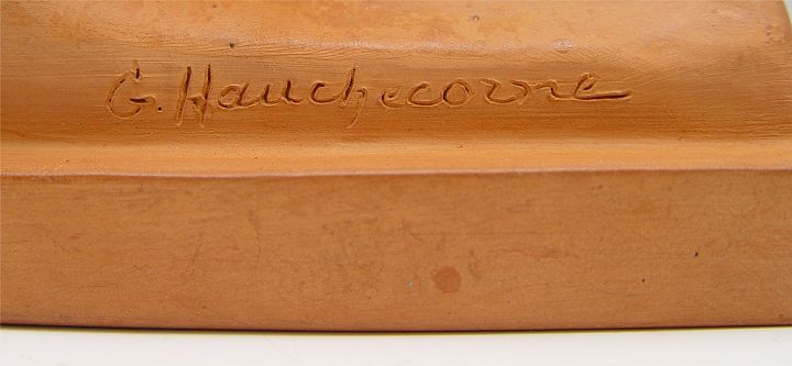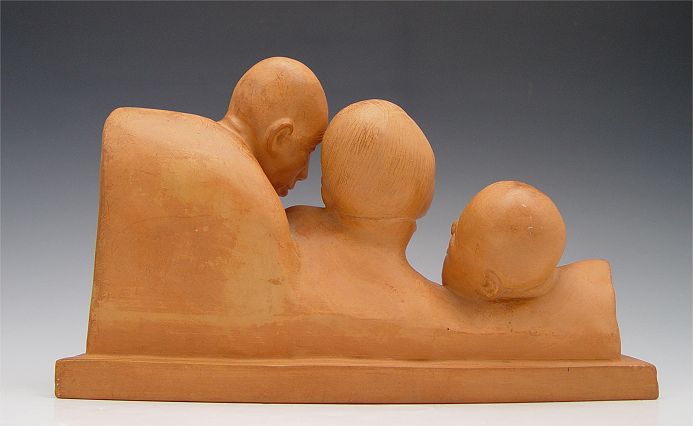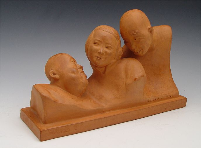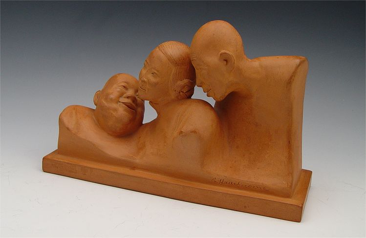 HAUCHECORNE, Gaston, (French, 1880-1945): ''Chinese Girl in the Company of Two Lovers'', Terra Cotta Sculpture, 6 3/4'' h., 10 1/2'' w., incised signature, marked underneath France.