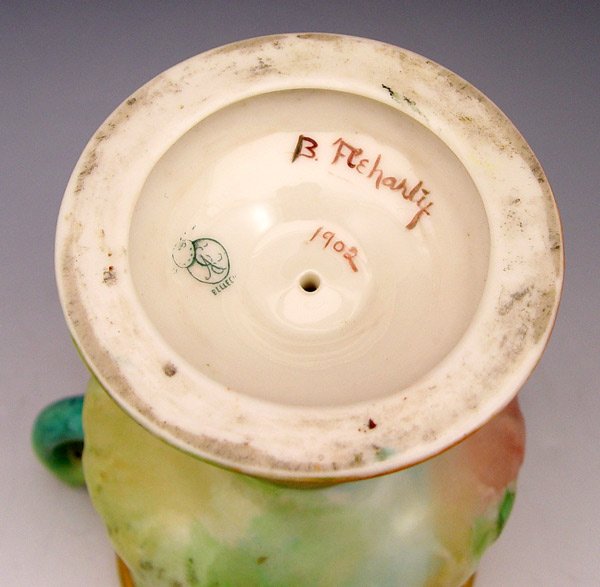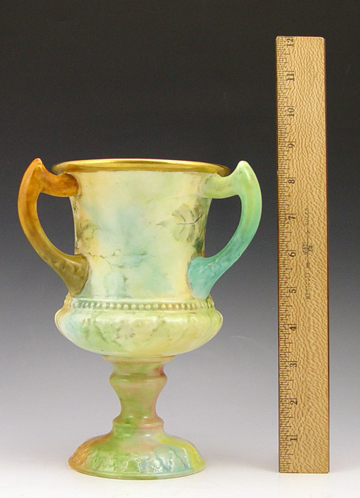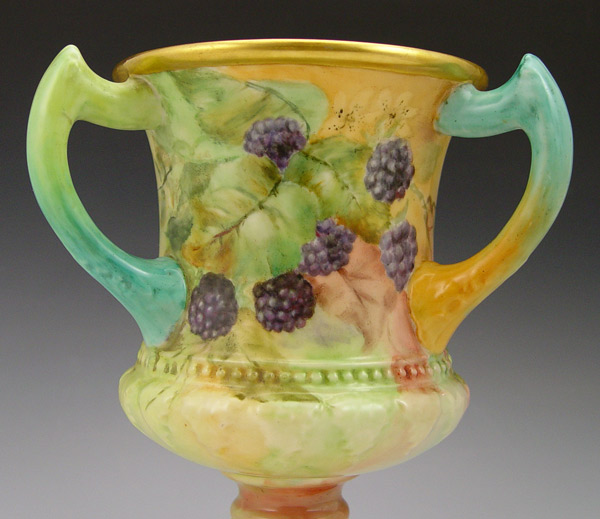 CERAMIC ARTS AMERICAN BELLEEK PORCELAIN LOVING CUP: Hand painted in a berry design. Dated 1902. 8 1/2'' h.
