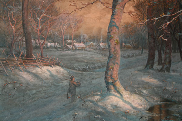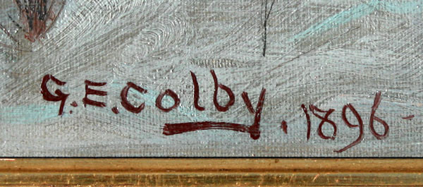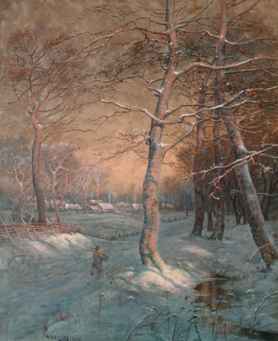 COLBY, George Ernest, (American, 1859-1922): Hunter in Winter Landscape OIL/Canvas, 39'' x 33'', signed and dated 1896, period gilded and carved frame with minor wear, 44 1/2'' x 38 1/2''.