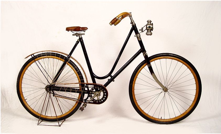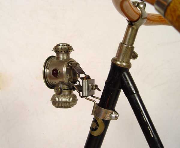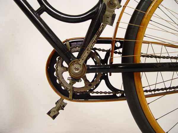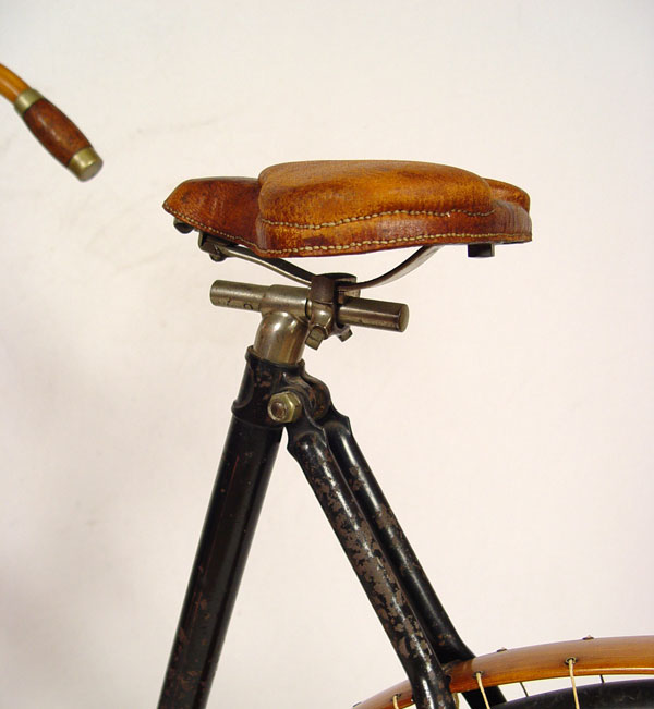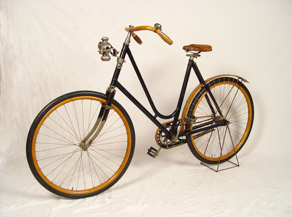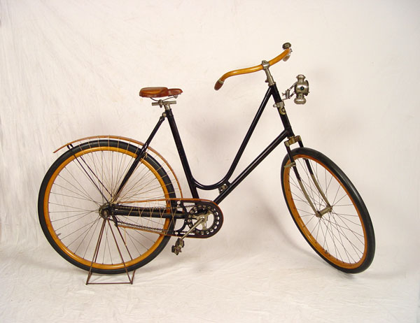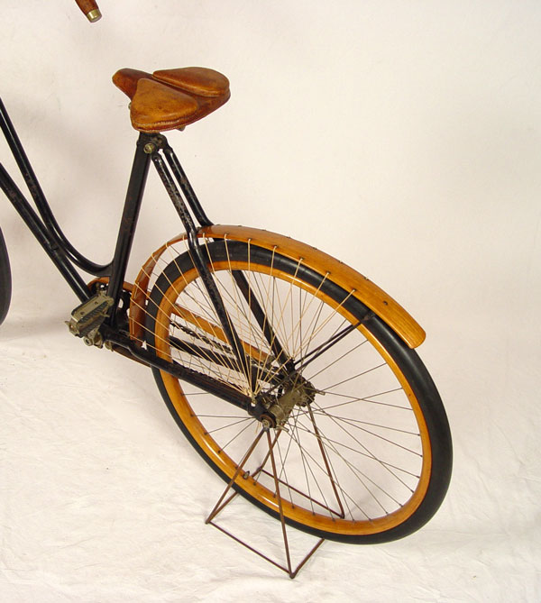 1890'S CRESCENT No. 10 WESTERN WHEEL WORKS BICYCLE: Circa 1891-1899, ''Crescent No. 10'' model bicycle from Western Wheel Works in Chicago. Unbelievable, untouched original condition with exception to the rubber on wheels which have been replaced at some time. Wood rims, back fender, handlebars and chain guide appear to be all original as well as original paint, pedals and emblem. Sold with a Edward Miller & Co. ''The Everlit'' kerosene front lamp on articulated absorbers. Overall measurements approx. 42 1/2'' high x 71'' long.