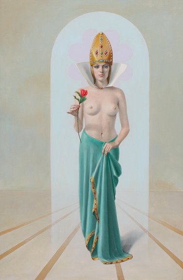 WHYTE, Raymond, (American, 1923-2002): ''The Visitor'', 1982, OIL/Board 36'' x 24'', signed, framed, 42'' x 30''.