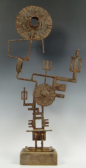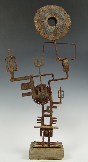 MARCO, Paul, (American, 20th C.): Abstract Iron Sculpture, 36'' h., affixed to wood plinth, 39'' overall, unsigned.