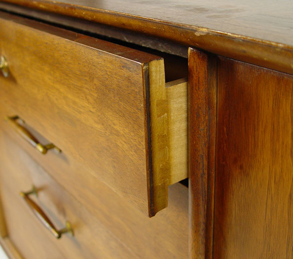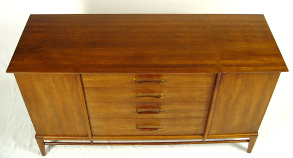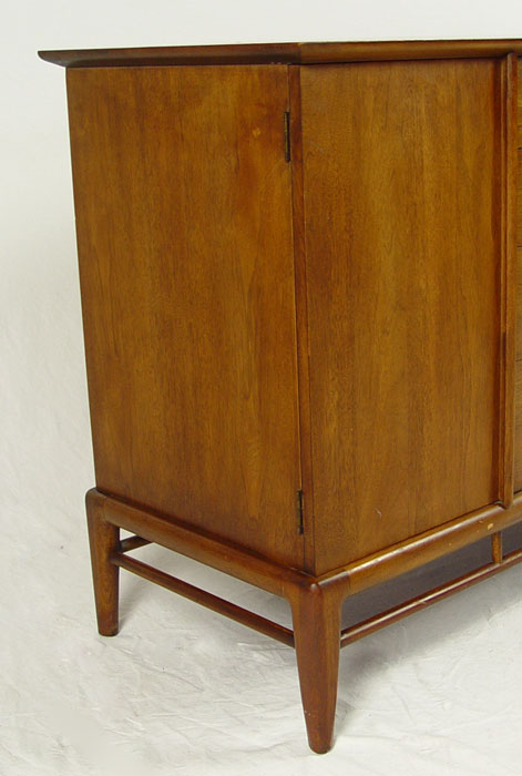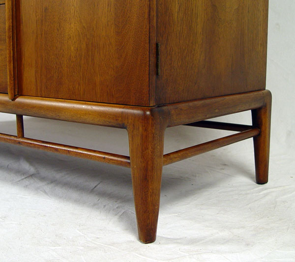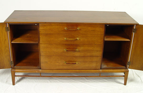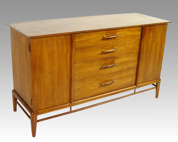 HERITAGE MID CENTURY SIDEBOARD SERVER: 4 drawers flanked by 2 doors, raised on legs. 33'' h x 58'' x 20''