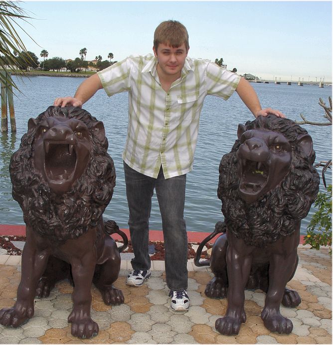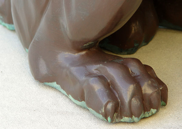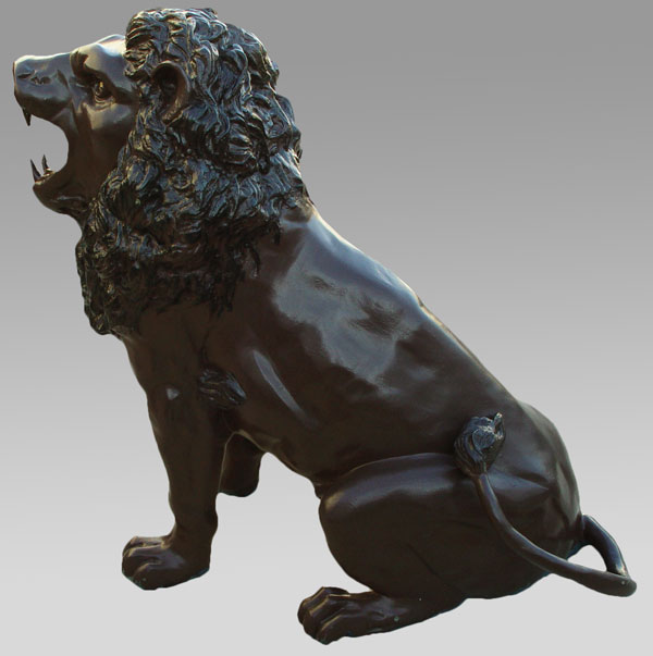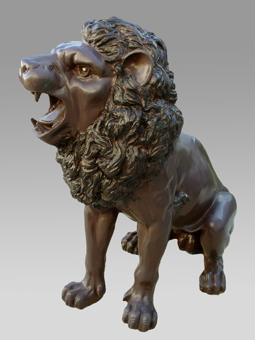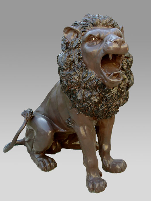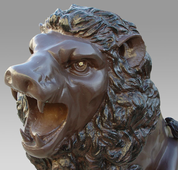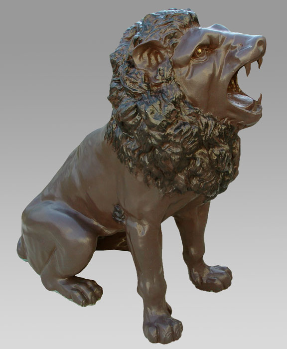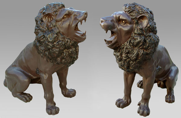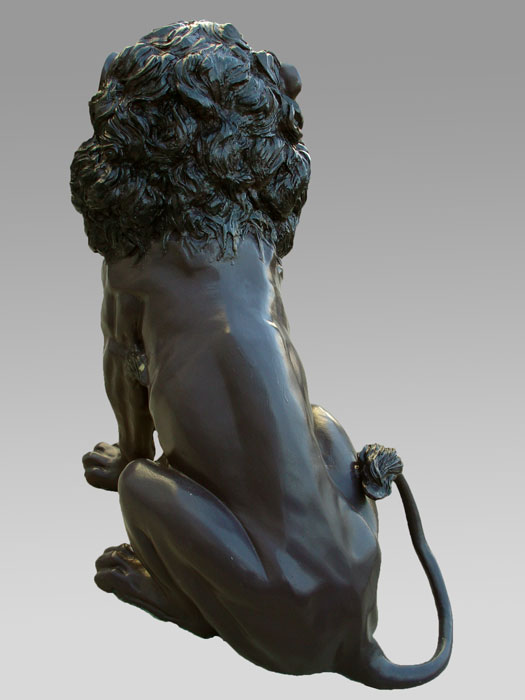 PAIR LARGE CAST METAL LIONS: 49'' h. x 62'' x 32''