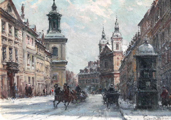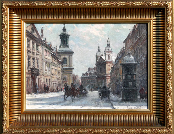 CHMIELINSKI, W. T., (Polish, 1911-1979): Winter in Warsaw, OIL/Canvas, 10'' x 14'', signed, deep dish gilded and carved cove molding, 15'' x 18 1/2'', titled verso.