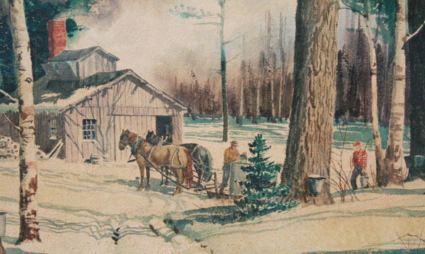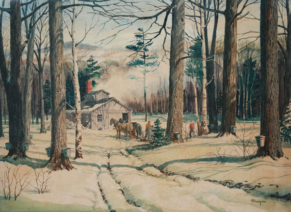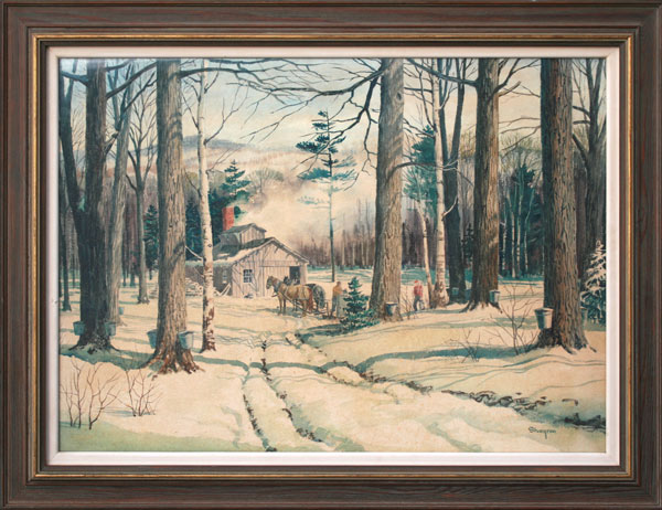 SHOGREN, Kinley, (American, 1924-1991): Maple Sugaring, Winter Landscape, Watercolor, 21'' x 29 1/2'' sight size, signed, framed, 27'' x 36''.