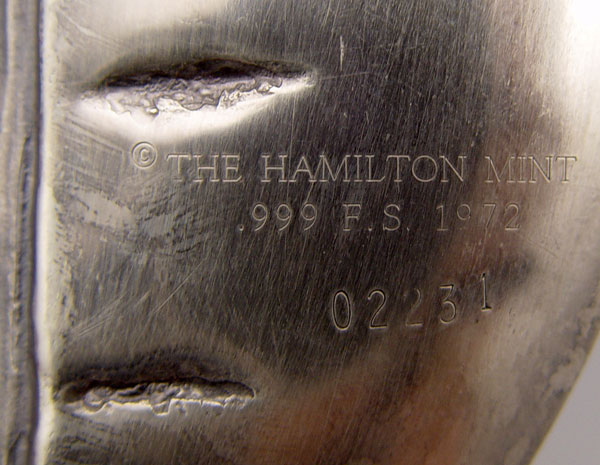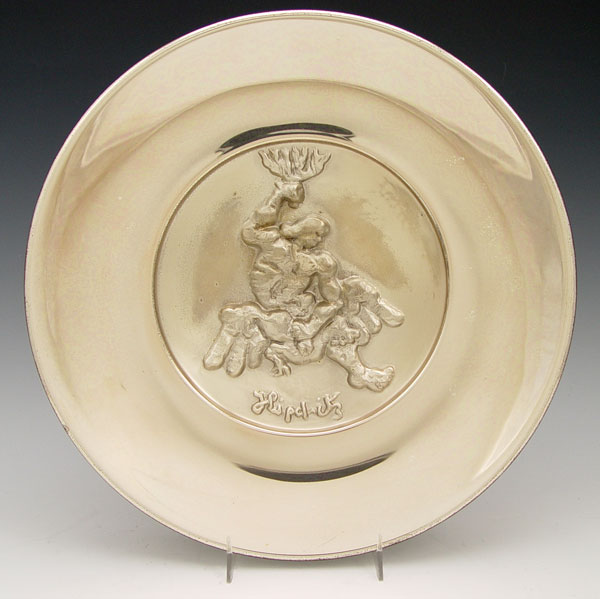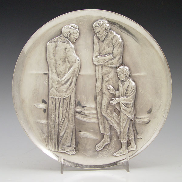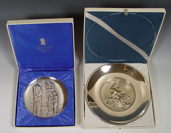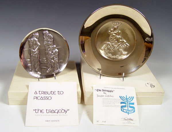 2 STERLING PLAQUES IN PRESENTATION BOXES: To include 1) Hamilton Mint, A Tribute to Picasso ''The Tragedy'', #2231, first edition, 1972. Approx. 9 troy oz. .999 silver. 2) Liberty Mint, ''The Struggle'' by Jacques Lipchitz, #2547 of 9700. Approx. 25 troy oz. mounted on bronze base.