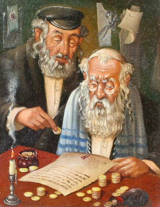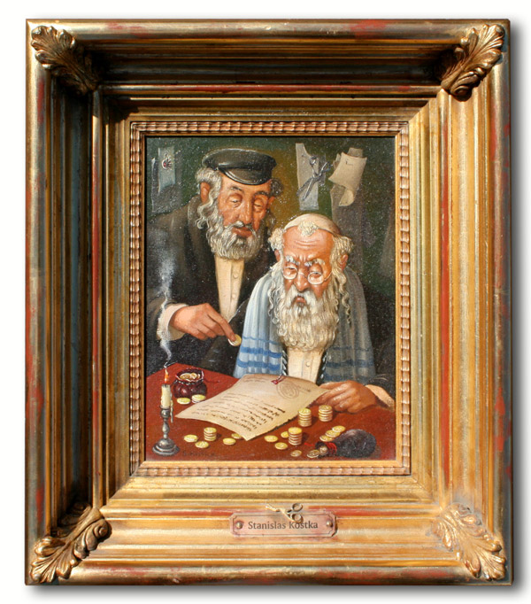 KOSTKA, Stanislas, (Poland, 1954-): Jewish Tax Collector, OIL/Canvas, 10'' 8'', signed, gilded frame, 14'' x 12'', signed verso.