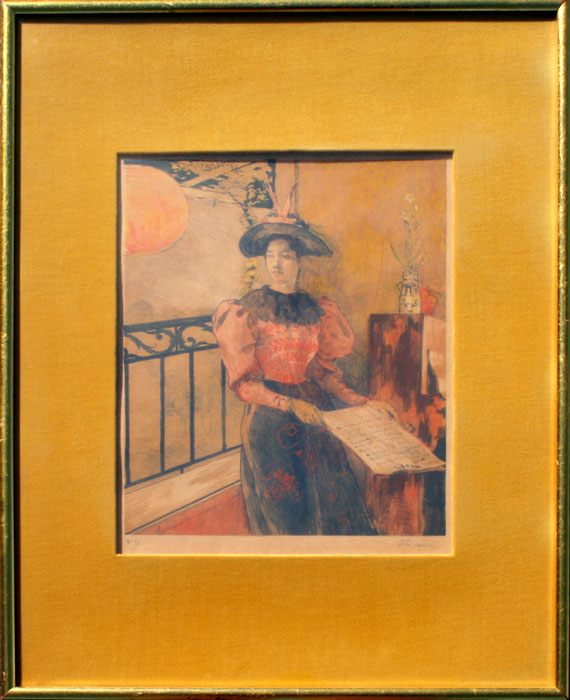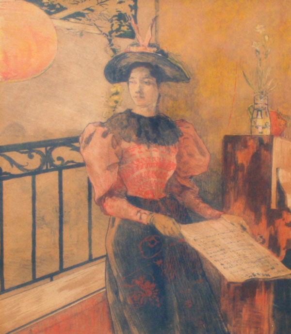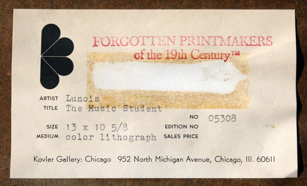 LUNOIS, Alexandre, (French, 1863-1916): ''The Music Student'', Lithograph, sight size 13 3/4'' x 11'', Pencil signed, framed, illegibly numbered, 24'' x 19''. Forgotten Printmakers of the 19th Century exhibition label verso, Kovler Gallery, Chicago.