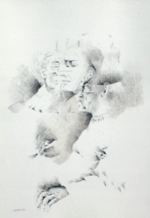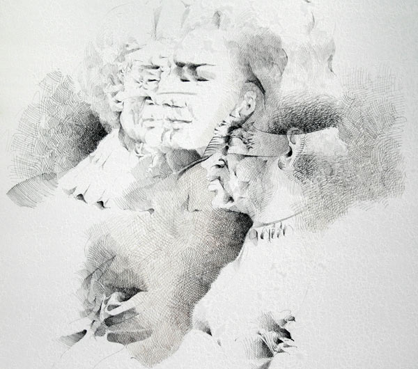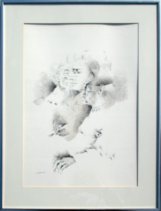 GALVEZ, Byron, (Mexican, 1941-): Facial Studies, Ink Drawing, 28 1/2'' x 19'' sight size, Eye Corp. label verso, framed, 36 1/2'' x 26''.