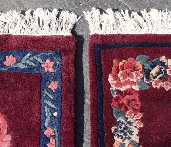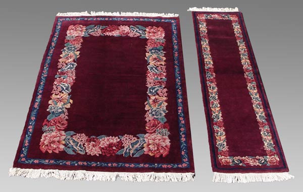 2 PIECE SCULPTED BURGUNDY INDO CHINESE CARPET & RUNNER: Carpet Approx. 8' x 5' 3'', runner approx 2' 2'' x 8' 5''
