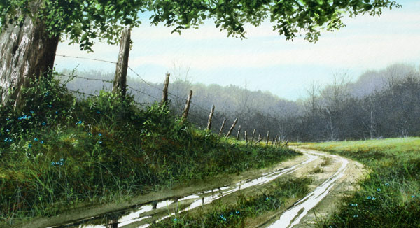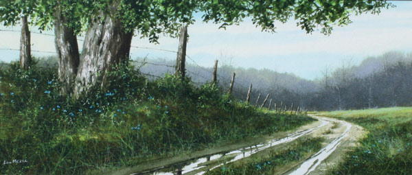 MESSA, Lou, (American, 20th C.): Rural road, Watercolor, 8 1/4'' sight size, signed, framed, 31'' x 18 1/2''.