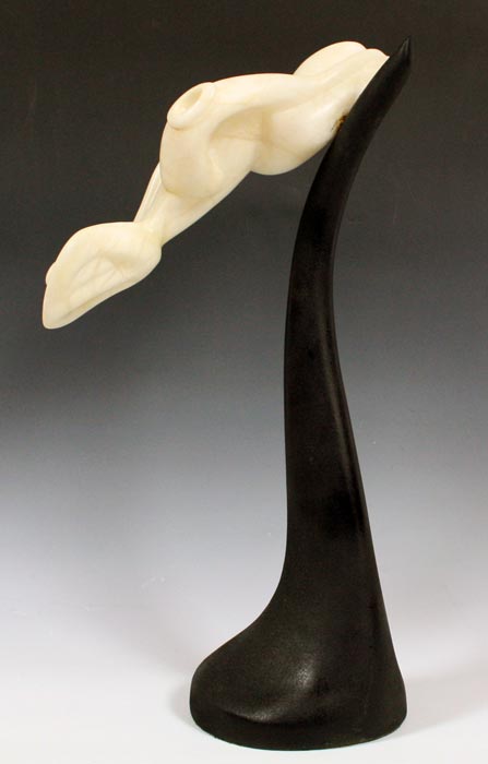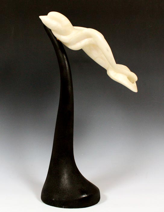 CLARK, Dane, (American, 20th C.): Abstract Marble affixed to black organic form stand, 28'' h., no visible signature. Florida artist.