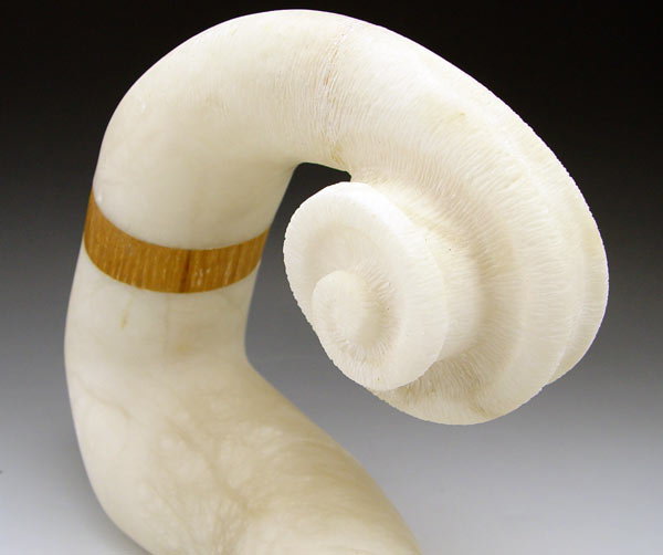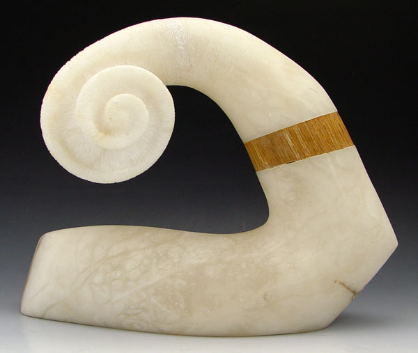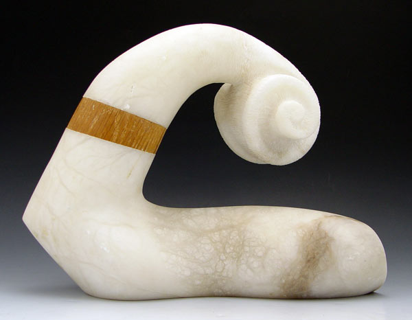 CLARK, Dane, (American, 20th c.): Violin/Arm Abstract Sculpture, Alabaster/Wood, 10 1/2'' h. x 13'' l., signed and dated 1985 underneath.