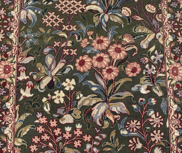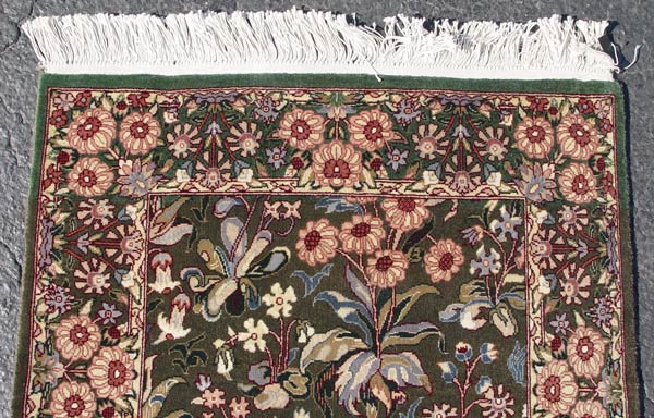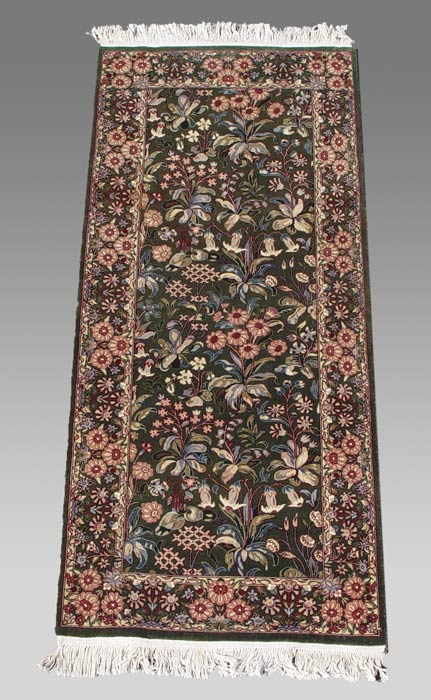 PAKISTANI GREEN FLORAL CARPET: Approx. 5' 11'' x 2' 7''