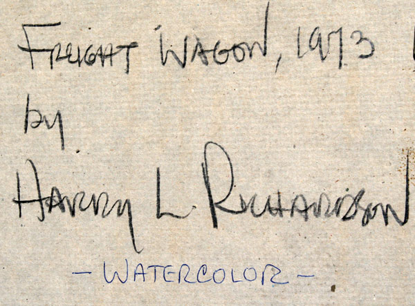 RICHARDSON, Harry, (American, 20th C.): Freight Wagon, Watercolor, 13 1/4'' x 20 1/2'' signed, framed, 25'' x 30'', signed, titled and dated 1973 verso.