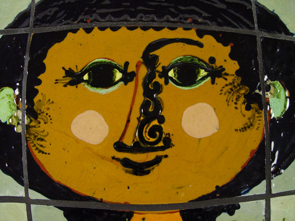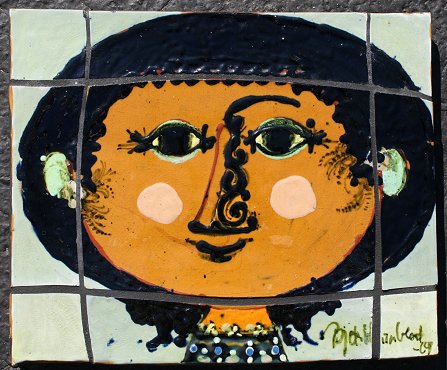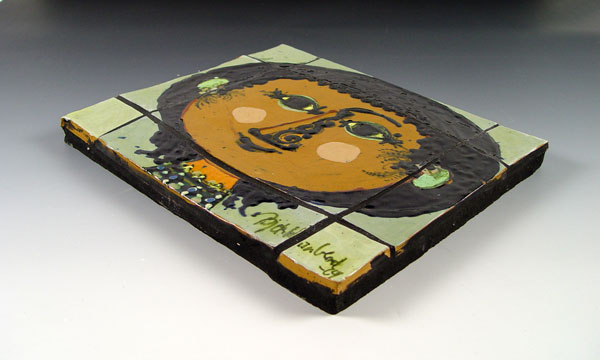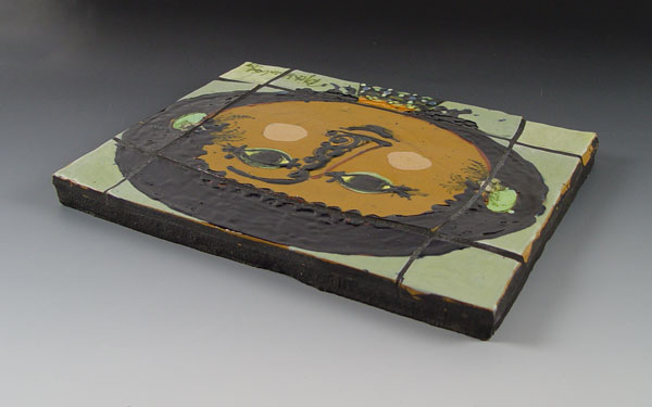 WIINBLAD, Bjorn, (Danish, 1918-): Smiling Face, Glazed Ceramic Tile, 13 1/4'' x 16'' x 1 1/4'', signed and dated, 64.