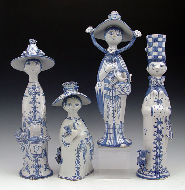 GROUP OF 4 BJORN WIINBLAD DANISH CERAMIC FIGURES: Hand painted, representing the four seasons, 9 1/2'' - 13 1/''h.