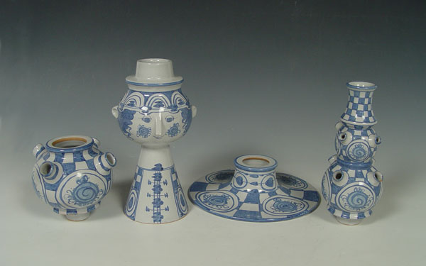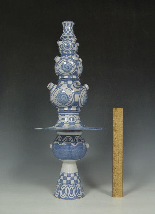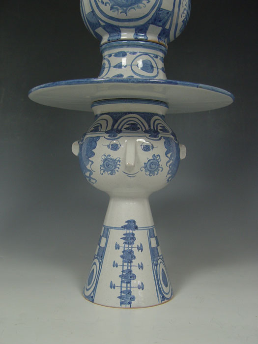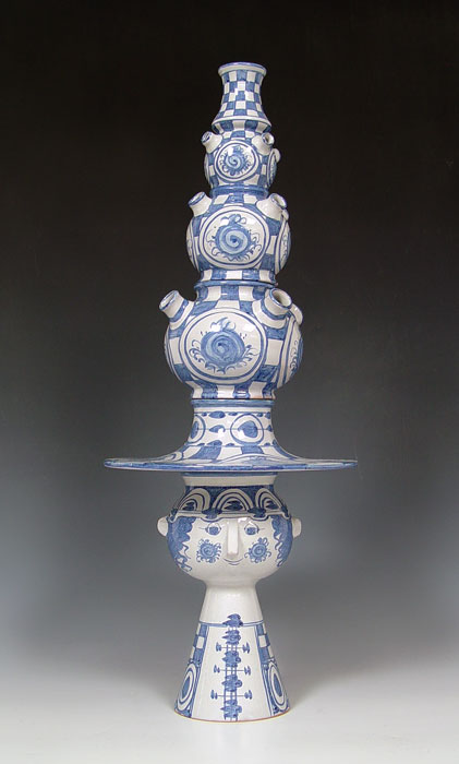 LARGE BJORN WIINBLAD DANISH CERAMIC SCULPTURE: 4 part ceramic sculpture. Cojoined BW monogram, dated '73. The hat measures 9 1/2'' dia., overall height is 24''.
