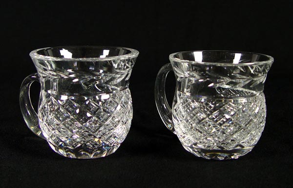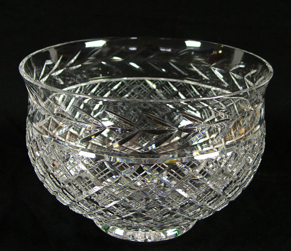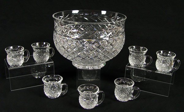ELEGANT WATERFORD CRYSTAL PUNCHBOWL WITH 9 CUPS: Signed Waterford punch bowl with 9 matching cups. Bowl is 12'' dia., 8 3/4'' tall.