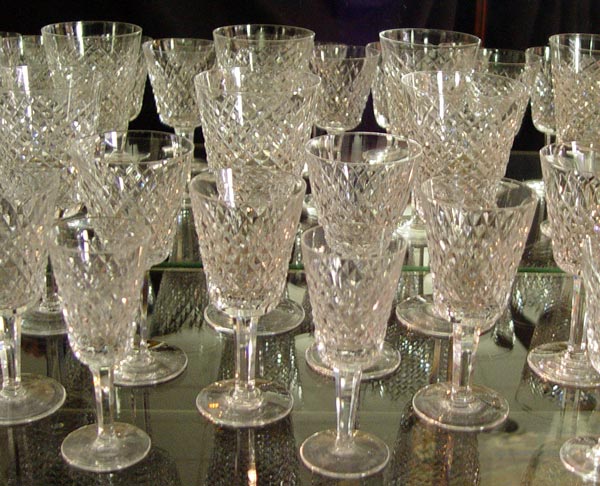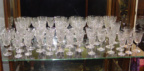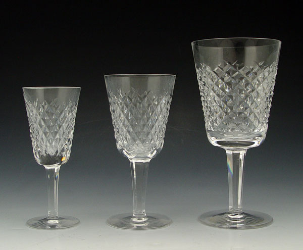 WATERFORD ''LISMORE: CRYSTAL STEMWARE: 28 piece suite to include 6 water (6 1/2''), 7 wine (5 1/2''), 7 white wine (5 1/4), and 8 sherry (5'').