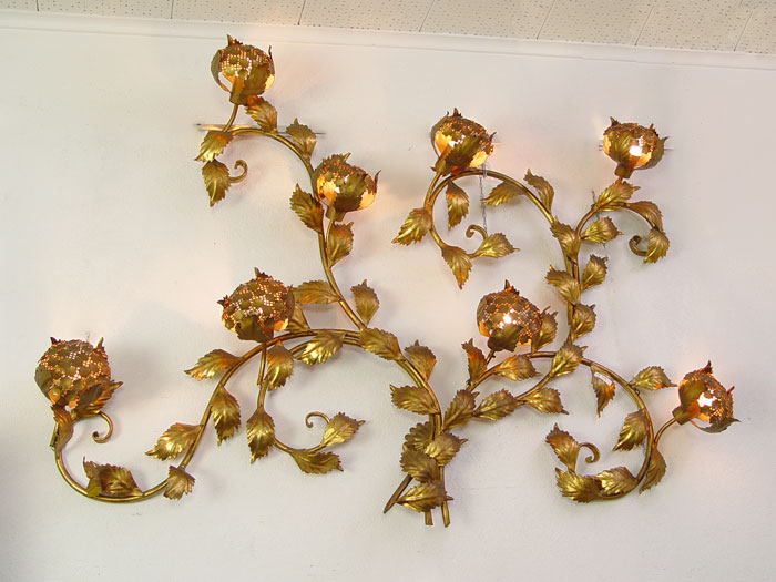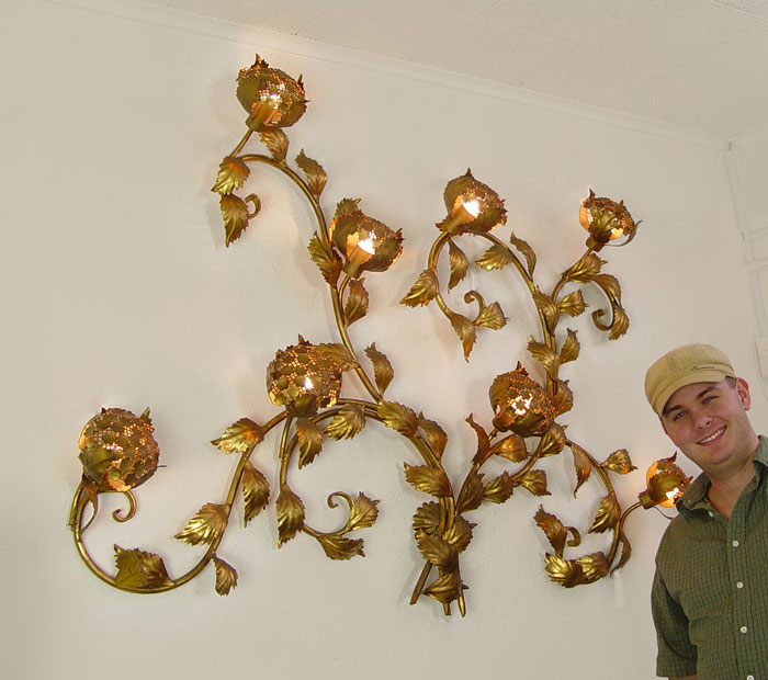 8 LIGHT GILT METAL WALL SCULPTURE: Circa 1950's. Approx. 5' long x 38'' high.