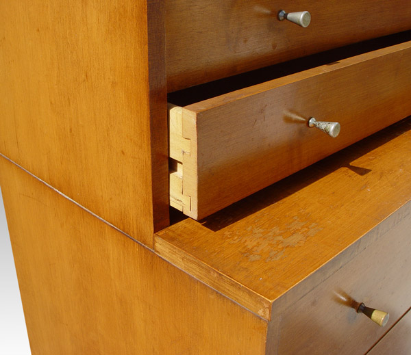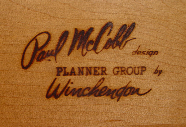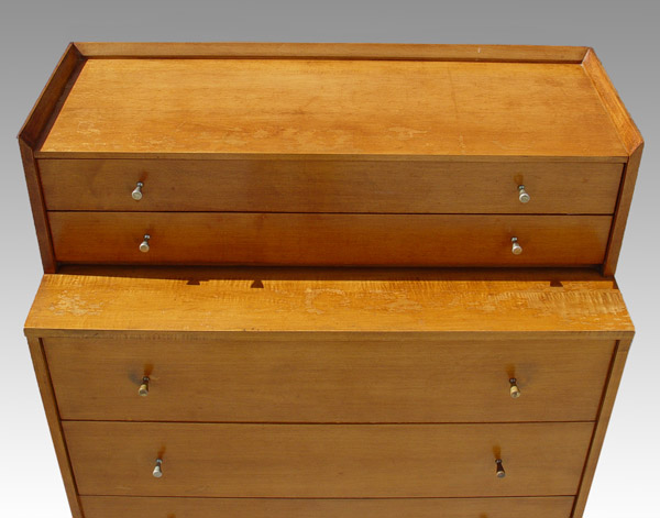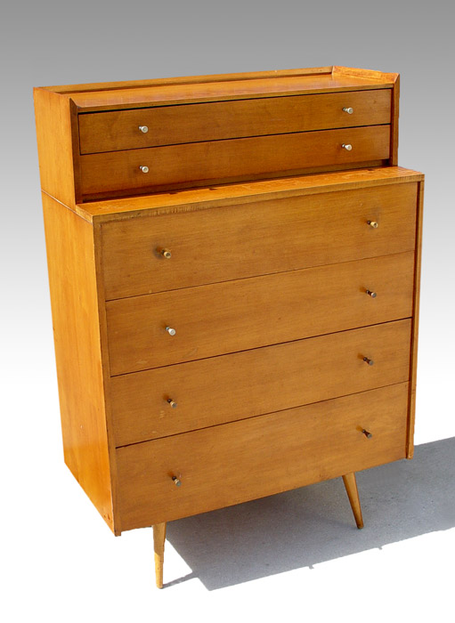 PAUL MCCOBB PLANNERS GROUP MID CENTURY MODERN CHEST: 2 drawers over 4 drawers, original pulls. 52 1/4'' h. x 36 1/4'' x 18 1/2''. The finish is original, though worn.