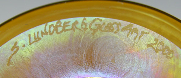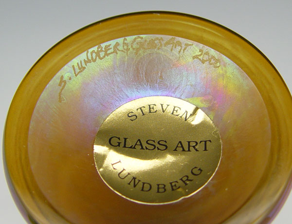 STEVEN LUNDBERG IRIDESCENT ART GLASS VASE: Signed and dated, 6 3/4'' tall.