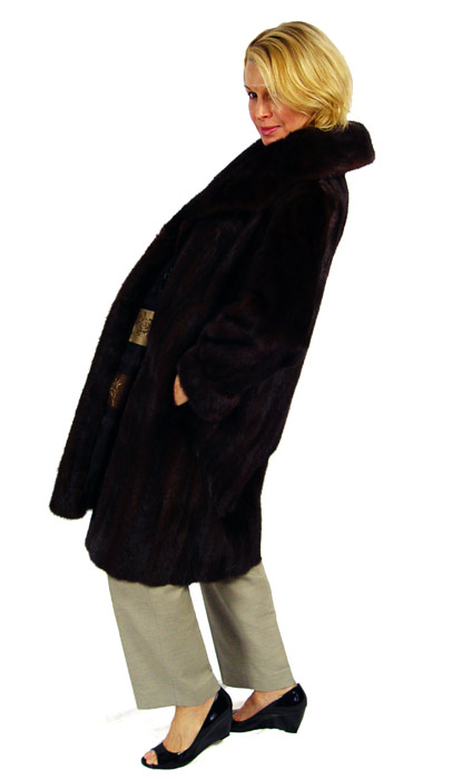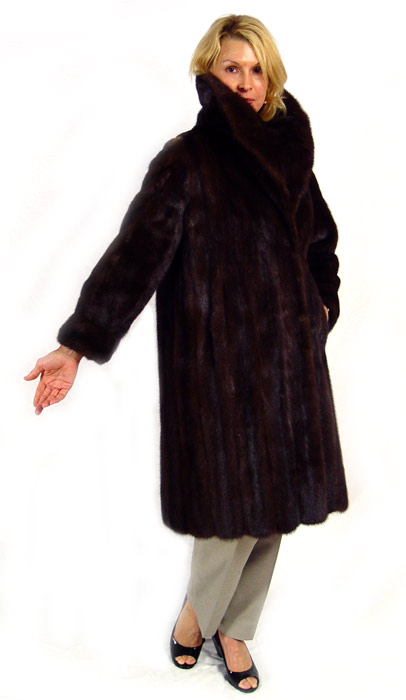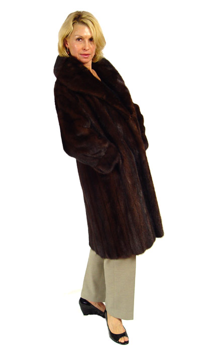 CHOCOLATE BROWN FULL LENGTH MINK COAT: Full collar, 40'' length.