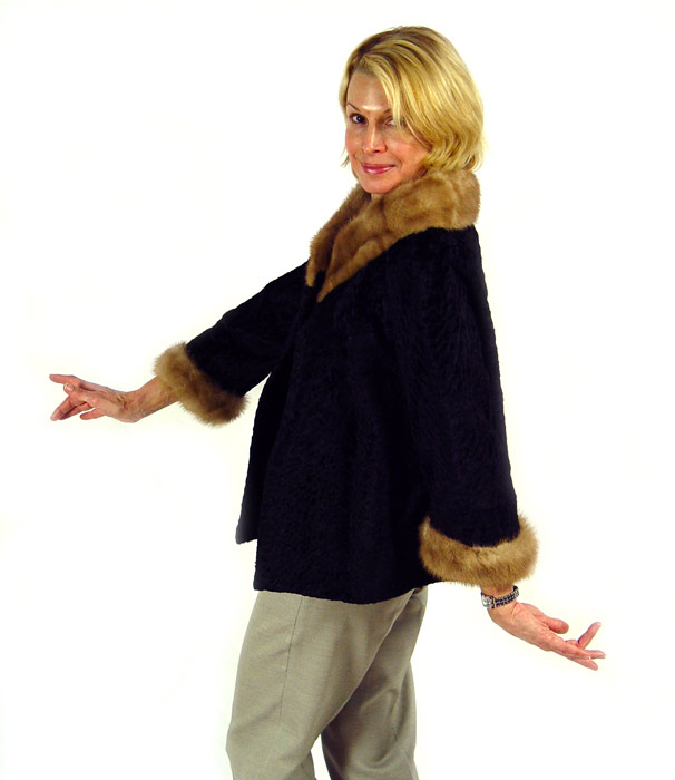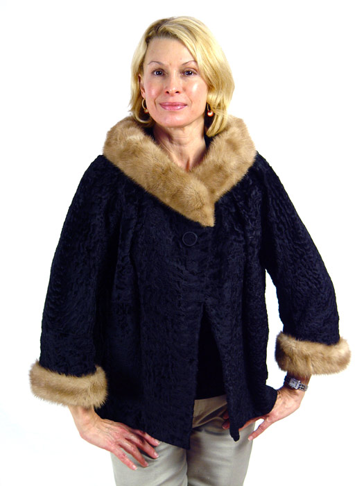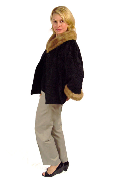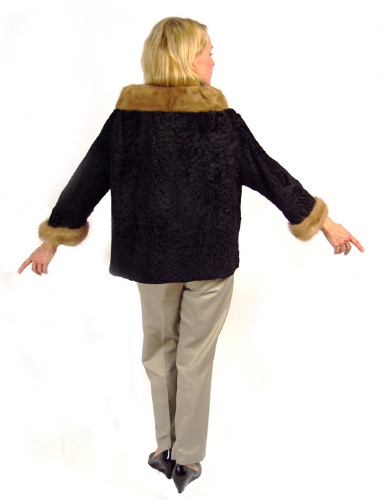 PERSIAN LAMB JACKET WITH MINK COLLAR and CUFFS: 24''l., shoulder width 18''.