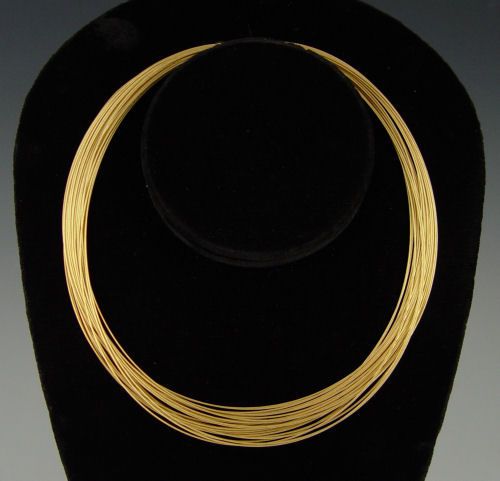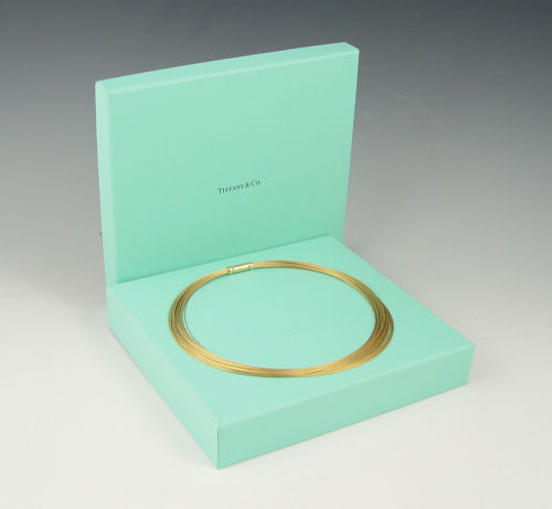 18K TIFFANY & CO. NECKLACE: 18K yellow gold in 30 strands of .50 mm flexible cable. Signed. 16'' in length. 30.0 grams.