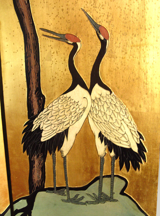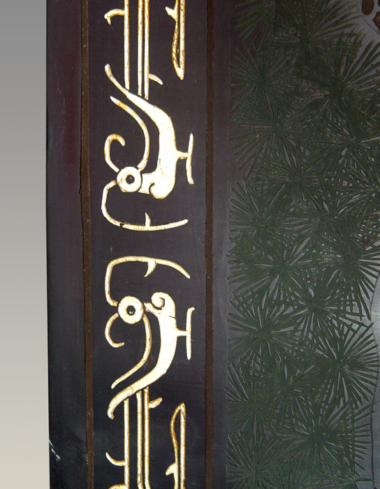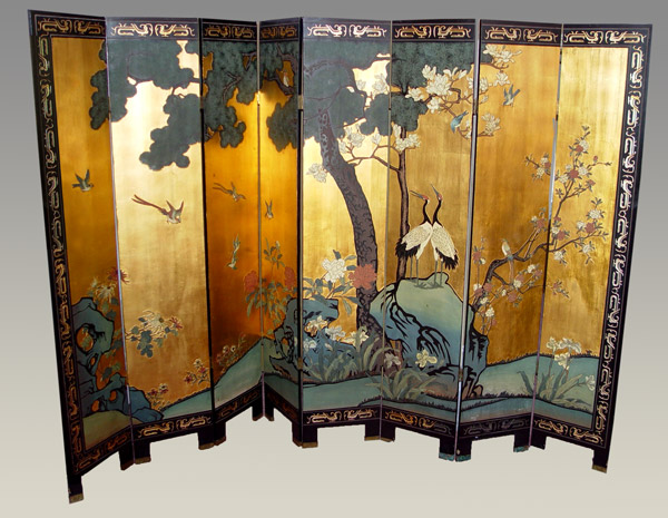 CHINESE 8 PANEL GILT & LACQUER SCREEN: 7 Ft tall screen, each panel 15 3/4'' wide.