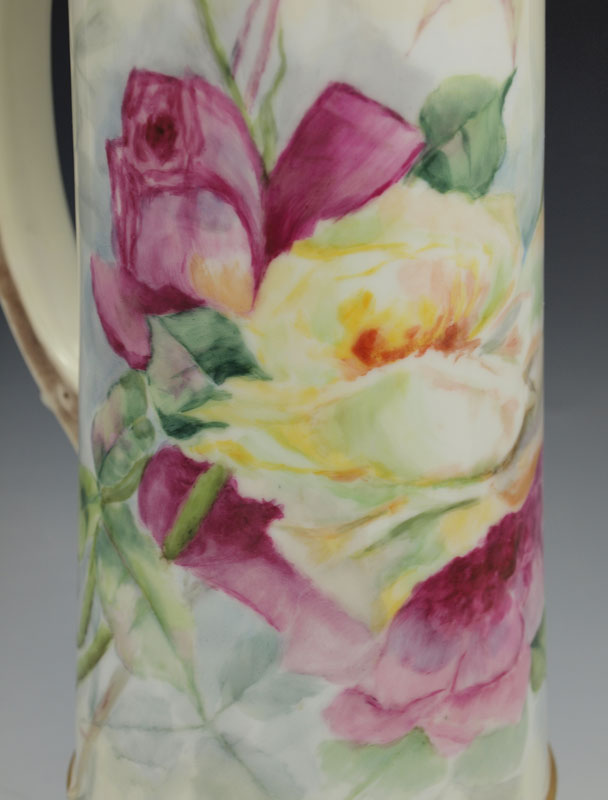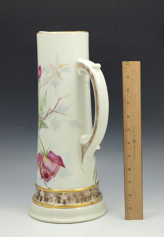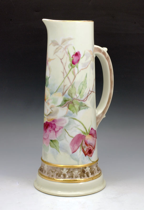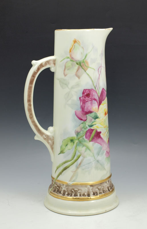 A TALL ROSE DECORATED FRENCH LIMOGES PITCHER: Ca. 1892-1907, Tresseman & Vogt. Hand painted roses. 14 1/2''h.