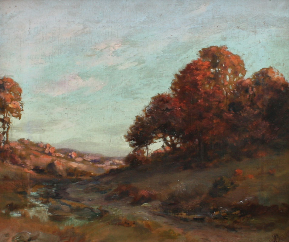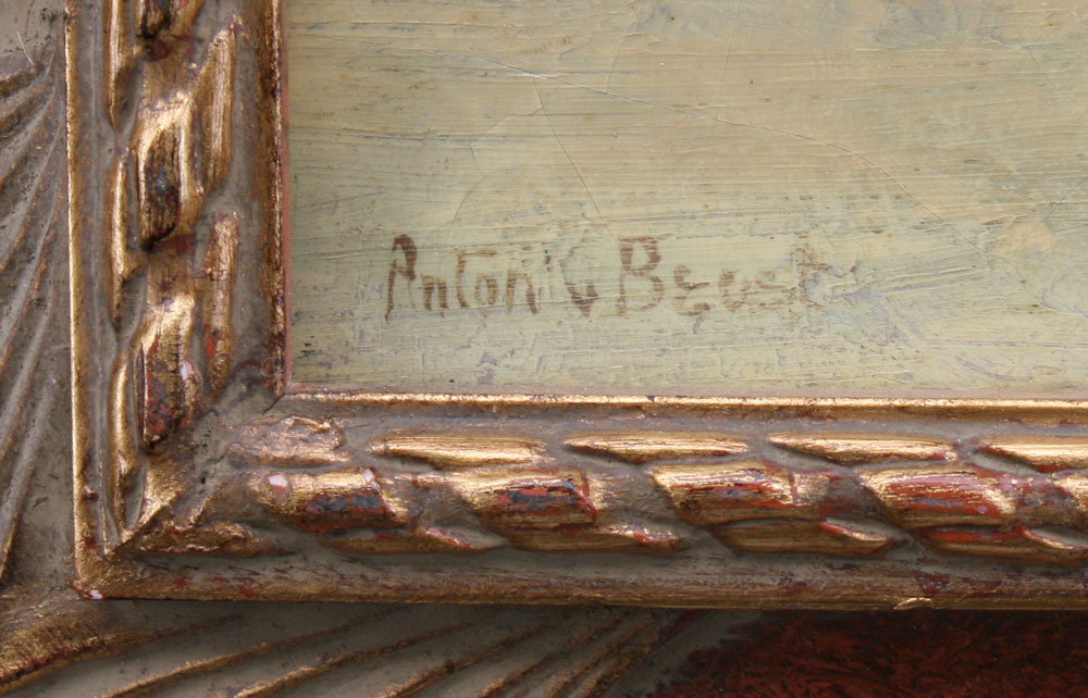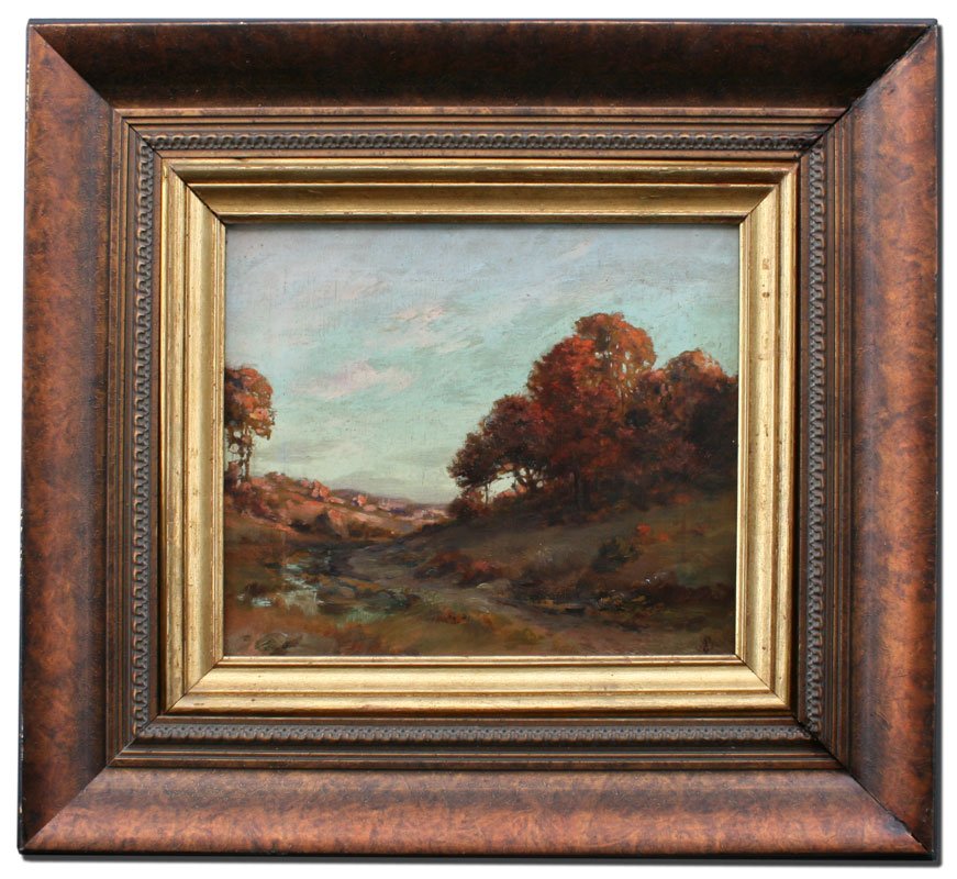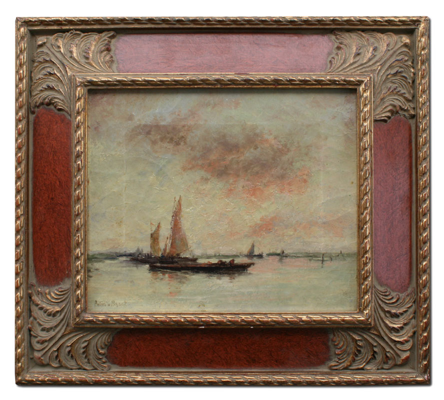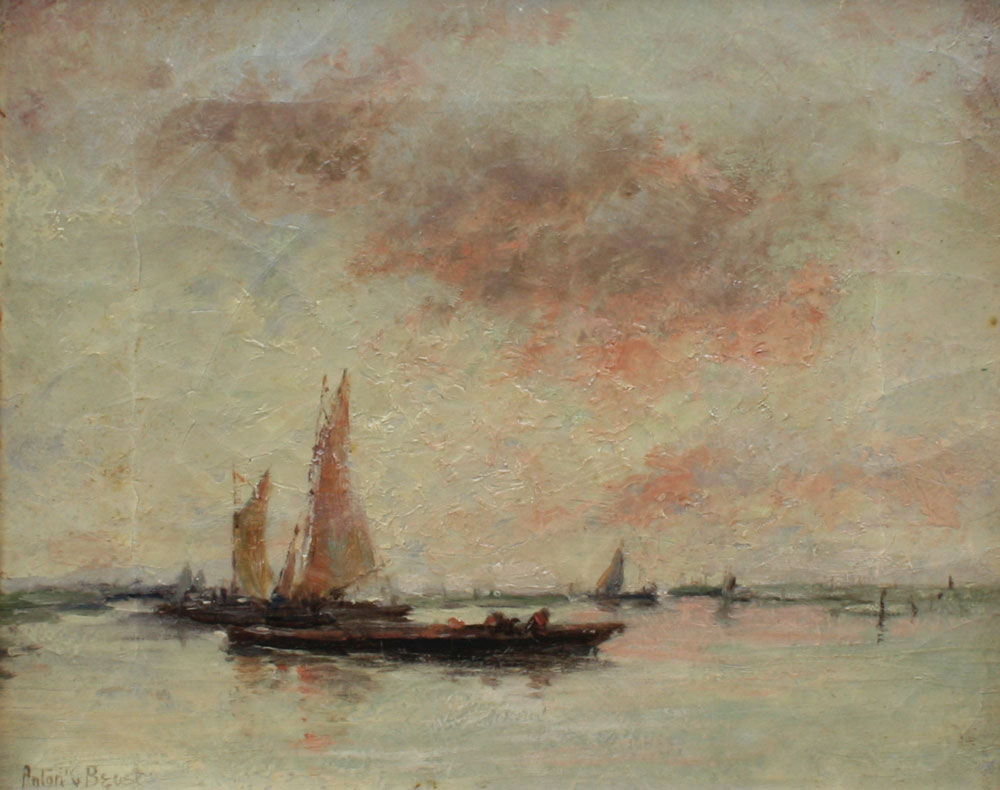VON BEUST, Anton, (American, 20th C): 2 Paintings; Ships in Harbor, OIL/Canvas, 10'' x 12'', signed, framed, 16 1/2'' x 18 1/2''; ''Sun Kissed'', Landscape with Stream, OIL/Canvas, 12'' x 14'', signed, label verso, framed, 22 1/2'' x 24 1/2''.
