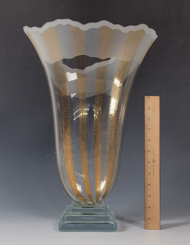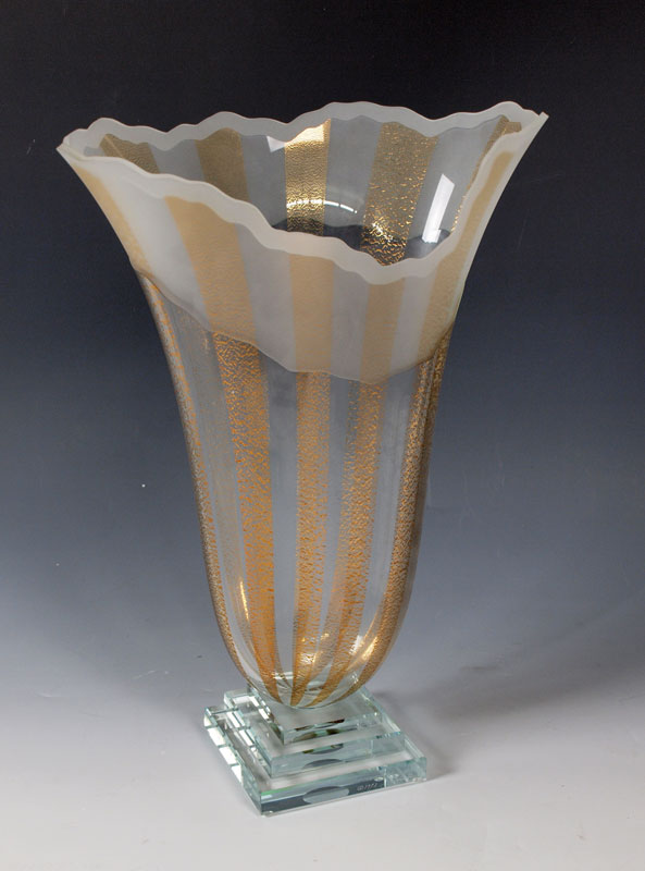 RENAISSANCE MILANO OVAL VASE BY STEPHEN SCHLANSER: Signed, dated 1992, 18 1/4''h. x 12 3/4''w. x approx. 7'', purchased at Studio 42 Gallery Los Gatos California.